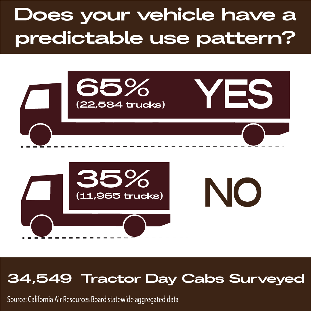 Returning to California’s aggregate data, 65% of day cab tractor vehicles have a predictable usage pattern.